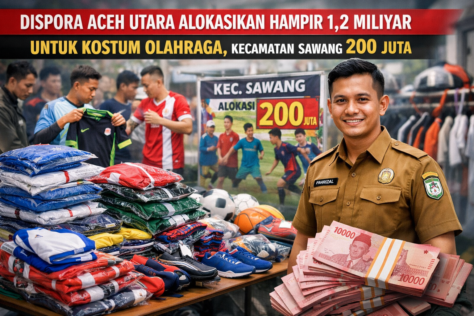 Aceh Utara – ForumKeadilanAceh.com |Dinas Pemuda dan Olahraga (Dispora) Kabupaten Aceh Utara mengalokasikan anggaran hampir Rp1,2 miliar untuk pengadaan kostum dan perlengkapan olahraga yang didistribusikan ke sejumlah kecamatan.