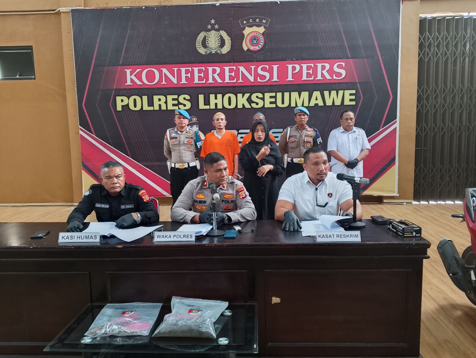 Kasus tersebut diungkap dalam konfrensi pers yang dipimpin Kapolres Lhokseumawe AKBP Dr. Ahzan., S.H., S.I.K., M.S.M., M.H diwakili Wakapolres Lhokseumawe Kompol Salmidin., S.E., MM didampingi Kasat Reskrim IPTU Yudha Prasatya, S.H dan Kasi Humas Salman Alfarasi, S.H., M.M serta dihadiri sejumlah awak insan pers di Gedung serbaguna Polres Lhokseumawe, rabu siang (30/7/2025).