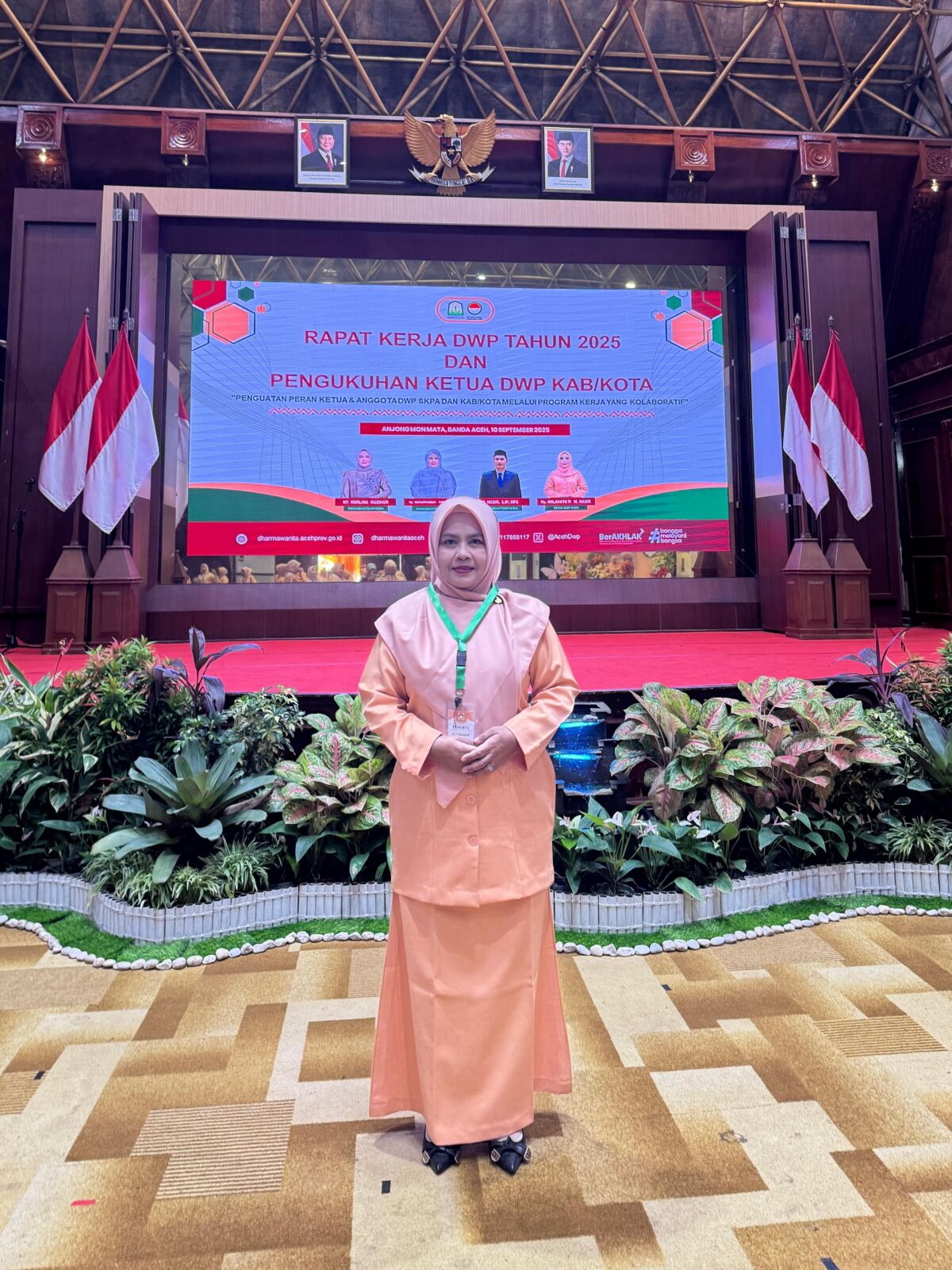 Usai pengukuhan, kegiatan dilanjutkan dengan Rapat Kerja DWP Tahun 2025 yang mengangkat tema “Penguatan Peran Ketua & Anggota DWP SKPA dan Kab/Kota melalui Program Kerja yang Kolaboratif”.