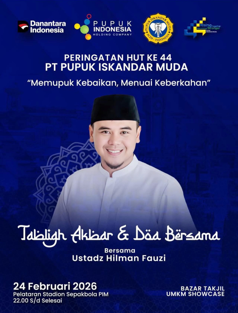 Peringatan HUT ke-44 ini turut didukung oleh kolaborasi antara Danantara Indonesia, Pupuk Indonesia, dan PT Pupuk Iskandar Muda sebagai wujud rasa syukur atas perjalanan panjang perusahaan dalam berkontribusi terhadap ketahanan pangan dan industri nasional.