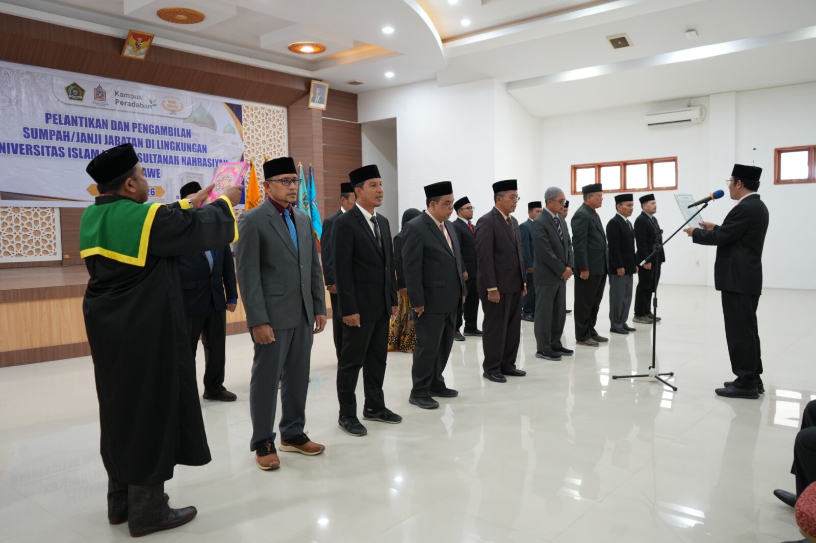 Lhokseumawe – ForumKeadilanAceh.com | Rektor Universitas Islam Negeri Sultanah Nahrasiyah Lhokseumawe Prof. Dr. Danial, M.Ag. lantik 16 pejabat di lingkungan kampus setempat, proses pelantikan dilaksanakan di Aula Gedung Biro Rektorat kampus pada Rabu (01/04/2026).