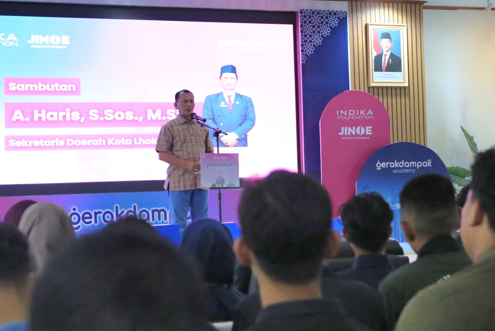 Dalam sambutannya, A. Haris menyampaikan bahwa Pemerintah Kota Lhokseumawe menyambut baik dan memberikan apresiasi setinggi-tingginya atas terselenggaranya program GerakDampak Academy.